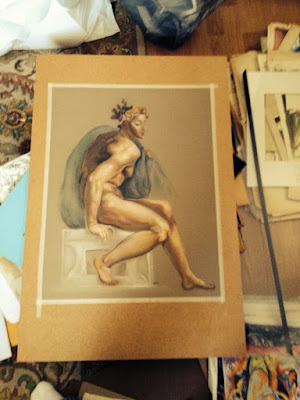 When I approached the review board, after six hours of sweltering with a sullen throng of tattooed brats in a dark, wood-paneled chamber, they predictably blew through my original stuff with some raised eyebrows, half-hearted nods, and wry grins. There were a few positive comments, but they were unimpressed. Oddly enough, I sensed that my years of being "encouraged" as a youngster had only yielded the same vapid, self-indulgent work that 99.9% of American teenagers produce, except mine was a little more polished, making it just barely worthy of consideration. I figured that my tedious efforts to truly "create" original content couldn't compete with the simple beauty of antiquity, and waited with bated breath as they turned the final page. At last, the panel's eyes rested on my copy of the Michelangelo.